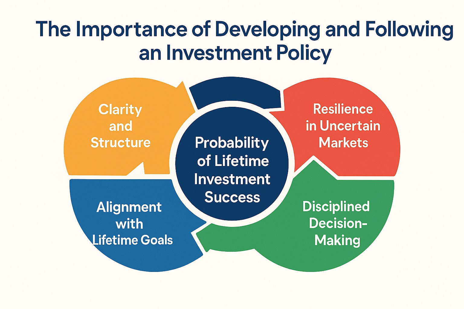 Ultimately, the reason for developing and following an investment policy with discipline is to maximize the probability of lifetime investment success. By focusing on evidence-based principles—market efficiency, diversification, risk management, and cost control—investors can avoid common pitfalls and stay on track toward their goals. The IPS serves as a roadmap, guiding investors through market cycles and emotional challenges, and providing the confidence to remain invested for the long term.